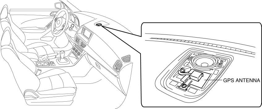 The GPS antenna is installed inside the center part of the instrument panel.