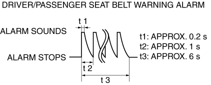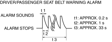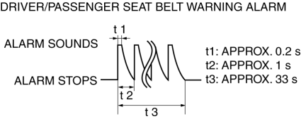 The driver/passenger seat belt warning alarm sound pattern is as shown in the figure.