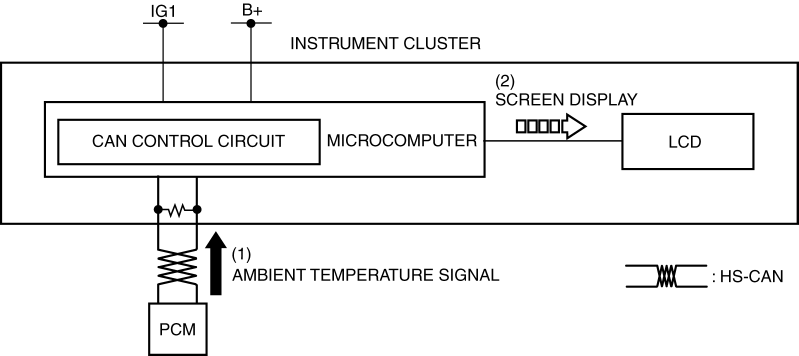 The instrument cluster displays the ambient temperature based on the ambient temperature signal sent from the PCM as a CAN signal.