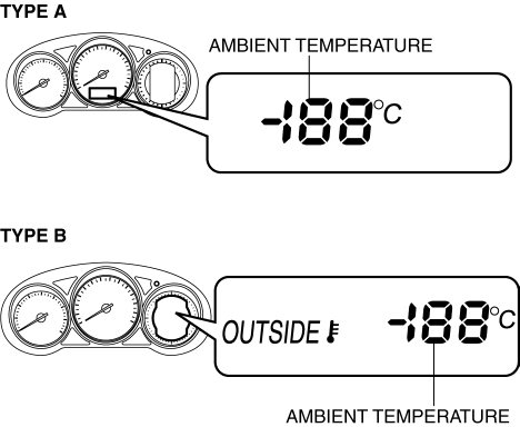 The ambient temperature is displayed between -40—70°C {-40―160°F} If the ambient temperature is -40°C {-40°F} or less, -40°C {-40°F} is displayed, and 70°C {160°F} is displayed if the temperature is 70°C {160°F} or more.
