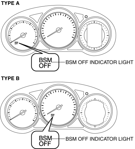 When the transistor turns on intermittently, the BSM OFF indicator light flashes (3) and when it turns on continuously, the BSM OFF indicator light illuminates (3).