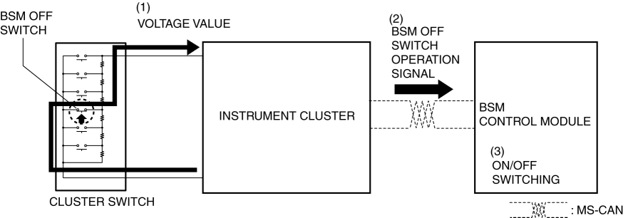 When the BSM OFF switch operates, the switch operation signal is sent to the instrument cluster.