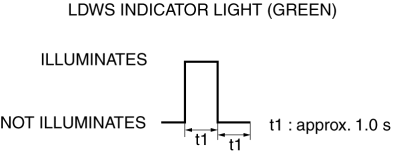 The flash pattern of the LDWS indicator light (green) is as shown in the figure.