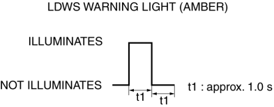 The flash pattern of the LDWS warning light (amber) is as shown in the figure.