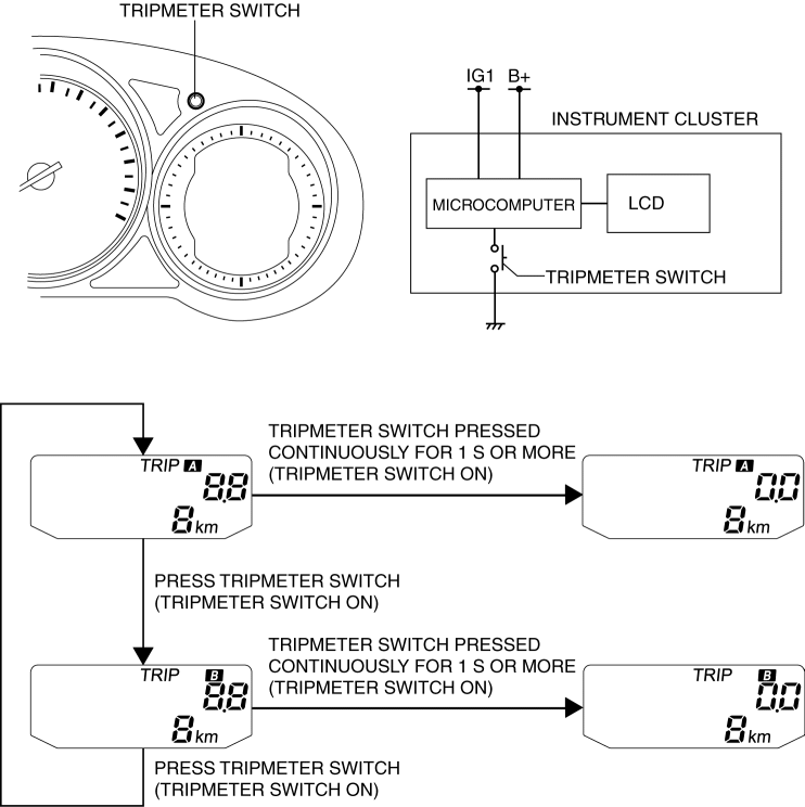 There are A and B tripmeters and the display for each can be switched with each press of the tripmeter switch.