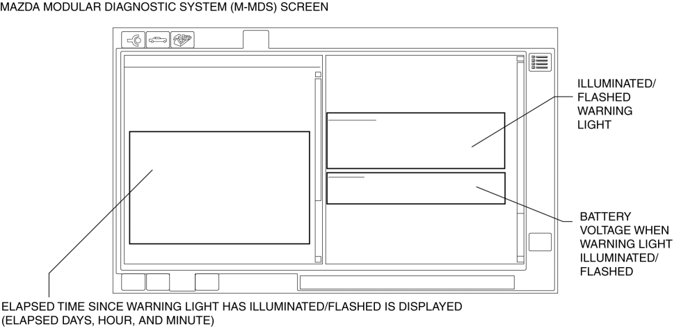 The operation record is stored by the instrument cluster and displayed using the Mazda Modular Diagnostic System (M-MDS).