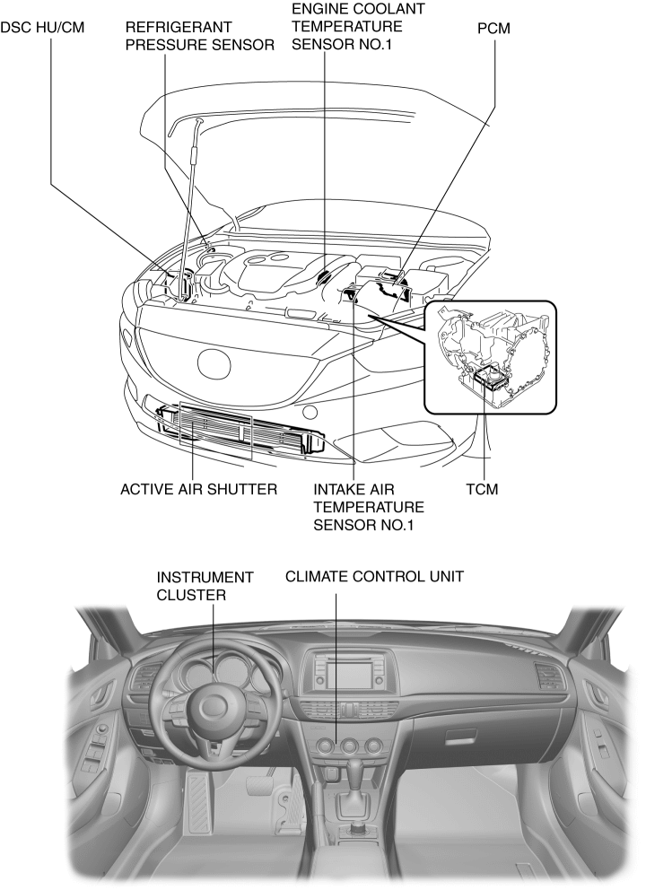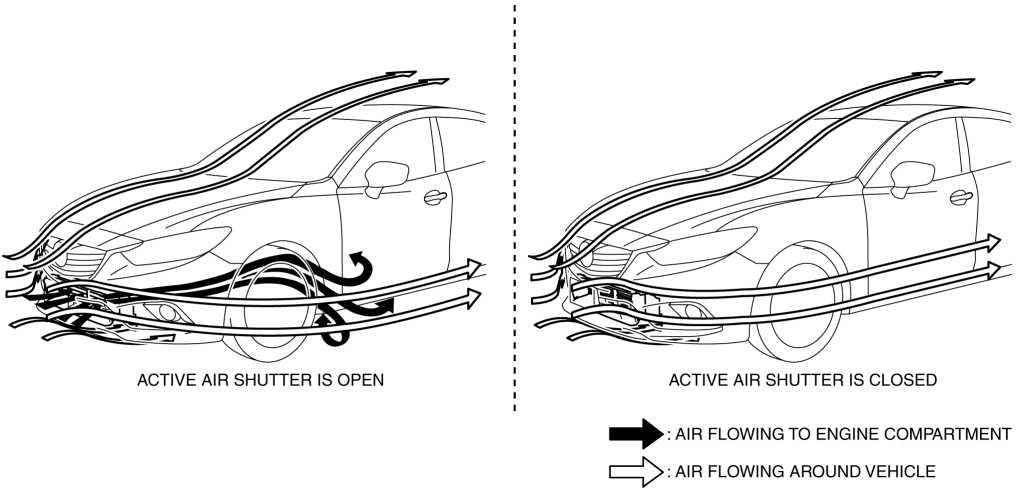 The active air shutter opens/closes the shutter according to the request signal from the PCM.