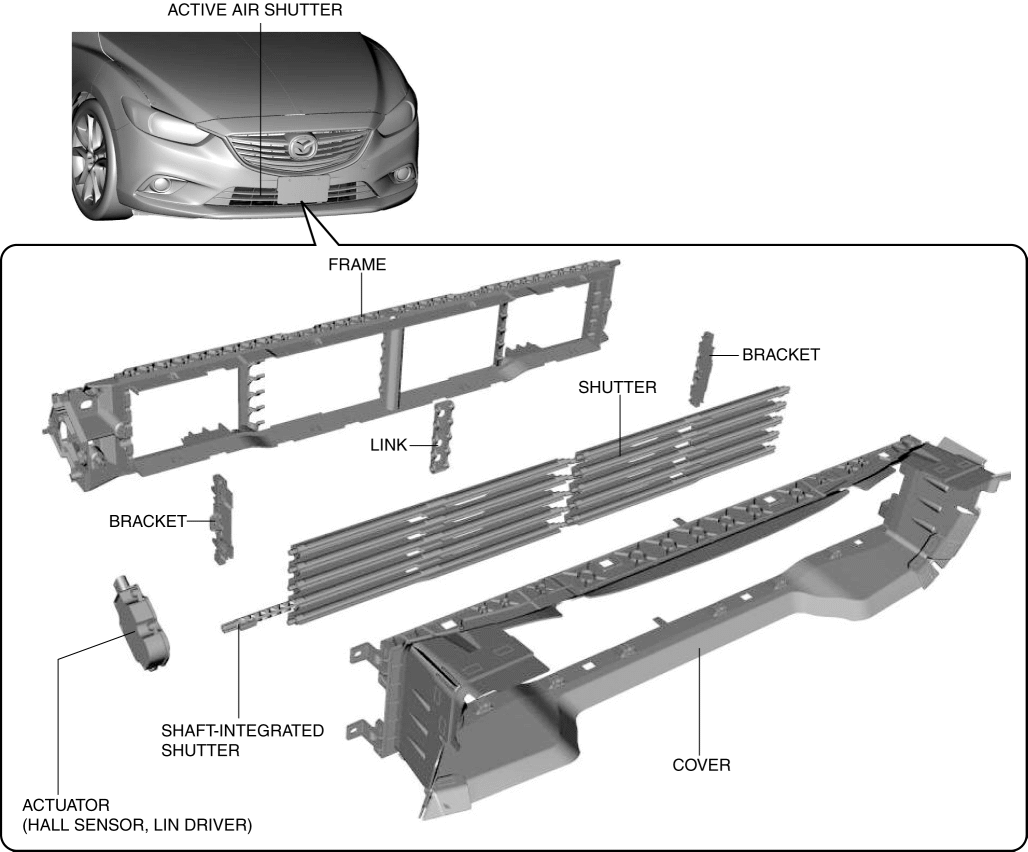 The active air shutter cannot be disassembled. If the active air shutter is disassembled, the active air shutter system will not operate correctly. Therefore do not disassemble.